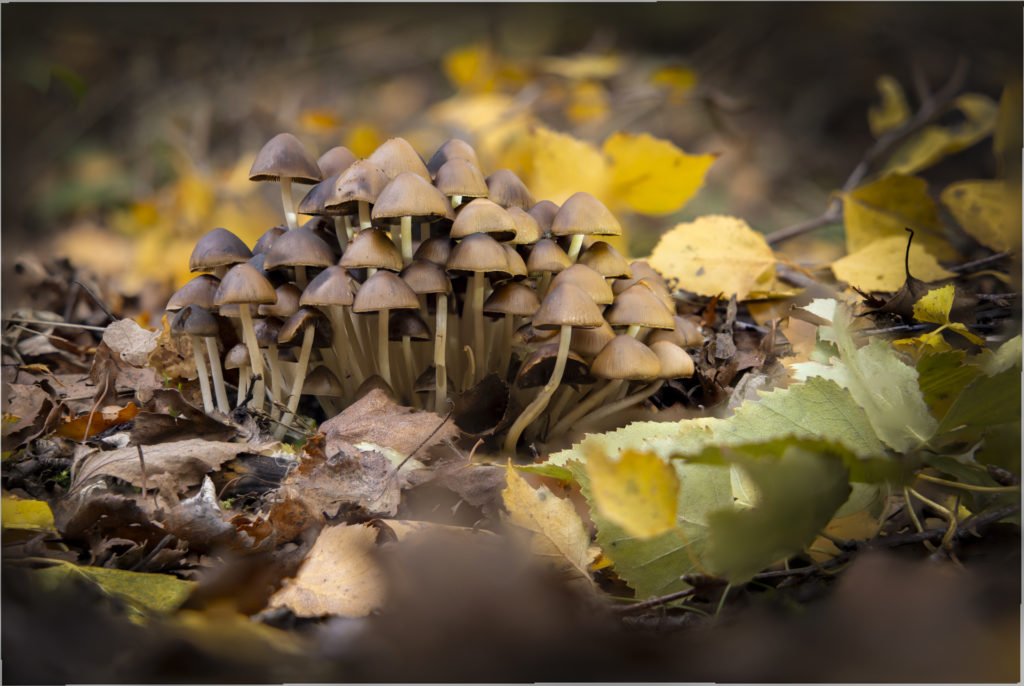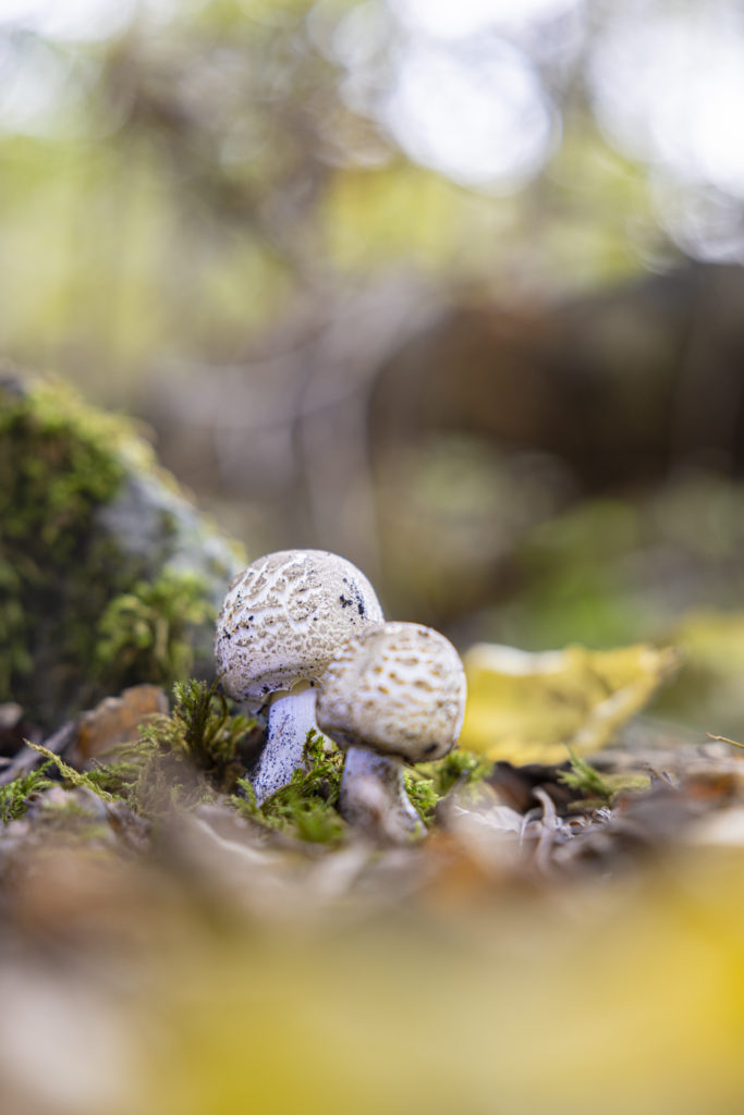 Sous les feuilles qui tapissent le sous-bois et les mousses duveteuses, les champignons s’épanouissent et se dressent à l’assaut des cimes protectrices. Des petits bien charnus, de fragiles tiges chapeautés, isolés ou en bataillon, Ils tentent malgré tout de se dissimuler du regard des promeneurs.